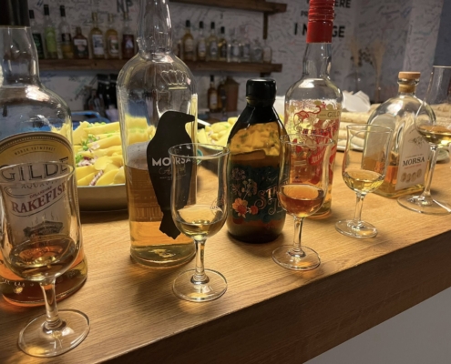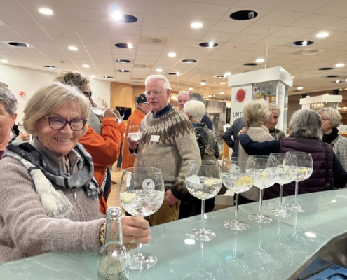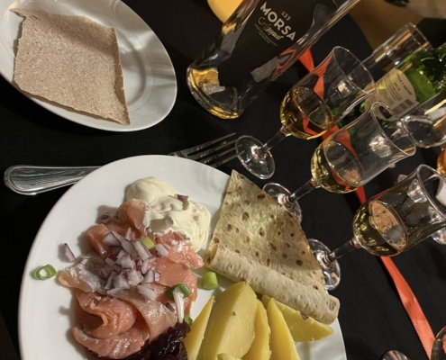 En stapp full buss brakte oss nok en gang «til fjells», hvor vi også i år ble tatt godt imot. Velkomstdrink (AT), omvisning i både krydderlager, produksjonsanlegg og fatlager skjerpet tørst og appetitt, og vi bli bønnhørt med deilig rakfisk og rikelig tilbehør. Blant kveldens fem akevitter var selvsagt både «vanlig» Morsa og Morsa jubileum 2025.